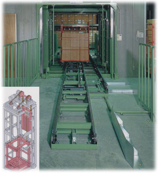 往複式(shì)提升(shēng)機是利用升降平台的上下往複運動來實現物料的垂直輸送。升降平台上可裝上不同種類的輸送(sòng)設(shè)備,並與出入口輸送設備相配合,使輸送(sòng)過程實現完全自動化;升降平台的上(shàng)下行程均可輸送物(wù)料,在升(shēng)降平台的一個循環過程(chéng)中可使物料同時(shí)雙方向(xiàng)流動;提升行(háng)程範圍大(dà),但輸送量隨著行程的增(zēng)加而減(jiǎn)少。