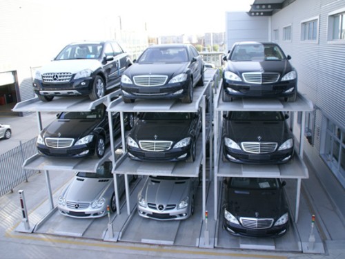 與地下車庫相比可更加有效地保證人身和車(chē)輛的安全,人在車庫內或車(chē)不準停位置,由電子控製的整(zhěng)個設備便不會運轉。應該說,機械車庫(kù)從管理(lǐ)上可以做到徹底的人(rén)車分流。在地下車庫(kù)中采用機械存車,還(hái)可以免除采暖通風設施,因此,運行中的耗電(diàn)量比工人(rén)管理的(de)地下車庫低得多。機(jī)械車庫一般不做成套係統,而是以單台集裝而成(chéng)。這樣可以充分發揮其用地少(shǎo)、可化(huà)整為零的優勢,在住宅區的每個組團中或每棟樓下都可以隨機設立機械停(tíng)車樓。這(zhè)對眼下車庫短缺的小區解(jiě)決停車(chē)難的問題提(tí)供了方便條件。