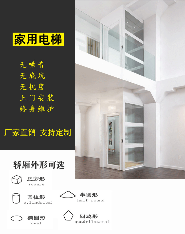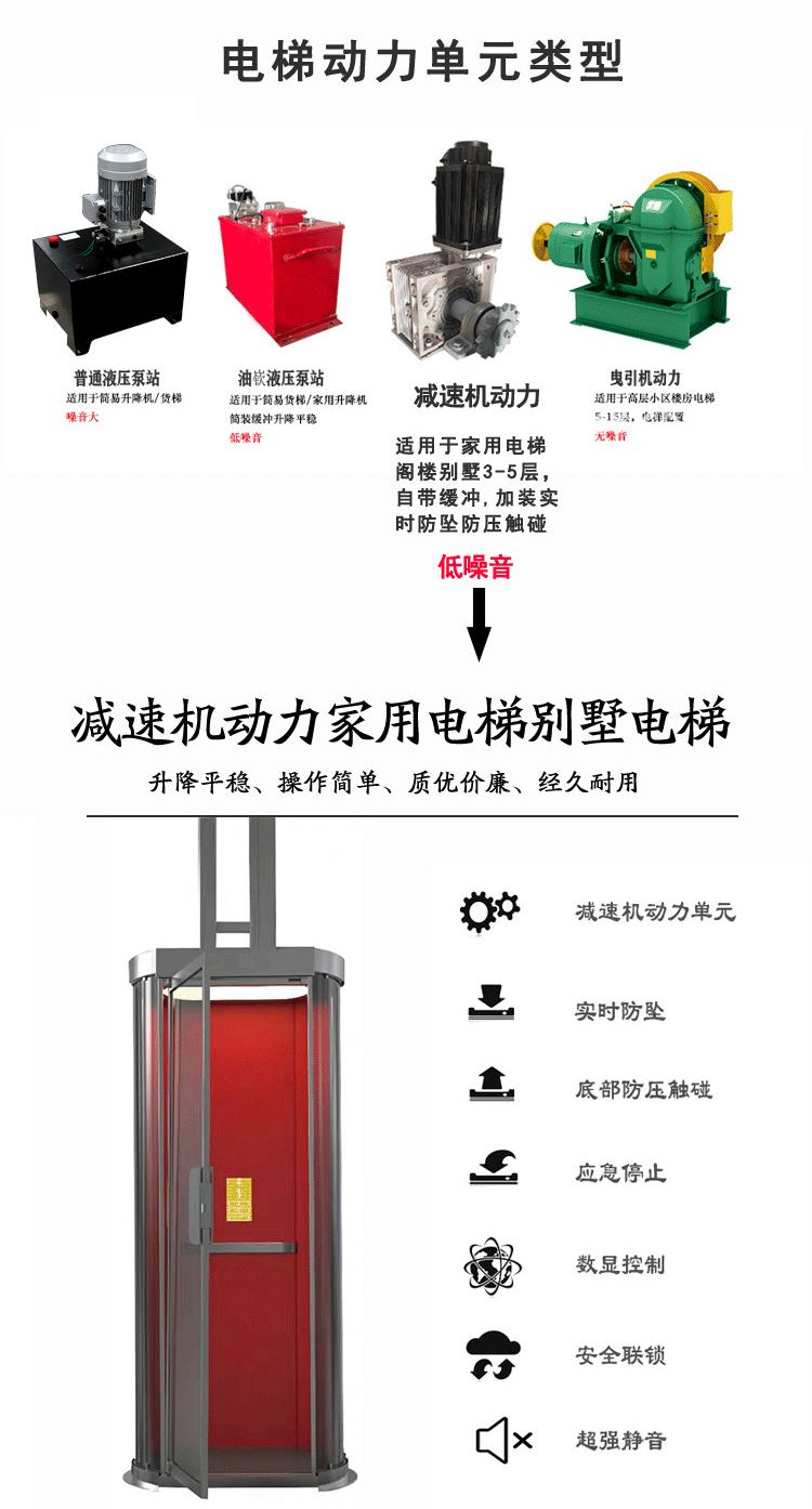 手拉門(及手動門)的結構類似於我們家裏常用的門,有門鎖聯動裝置和(hé)比較重。有安全裝置係統:有停電應急、電磁鎖、減震器、變頻器、漏電保護器等多處(chù)為了人們使用家用電梯安全設置。升降平穩、操作簡單(dān)、優質價廉、載人載雜物均(jun1)可。為人們提供了方便,節省了時間,為工作提供了效率。
