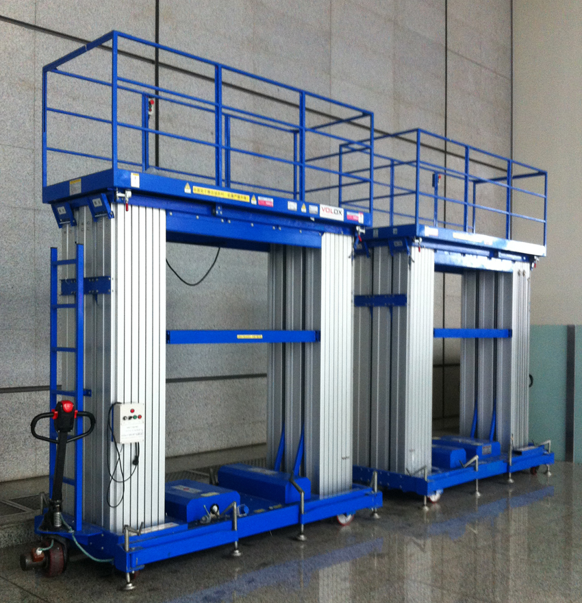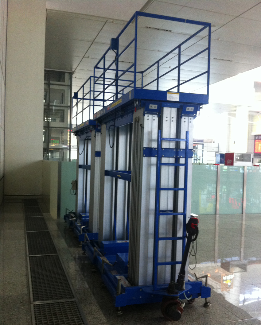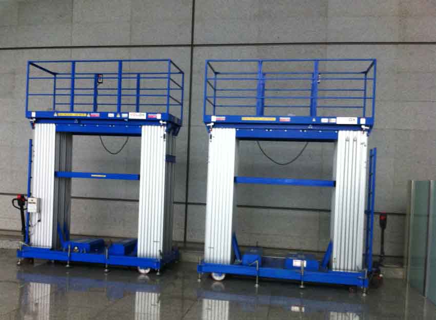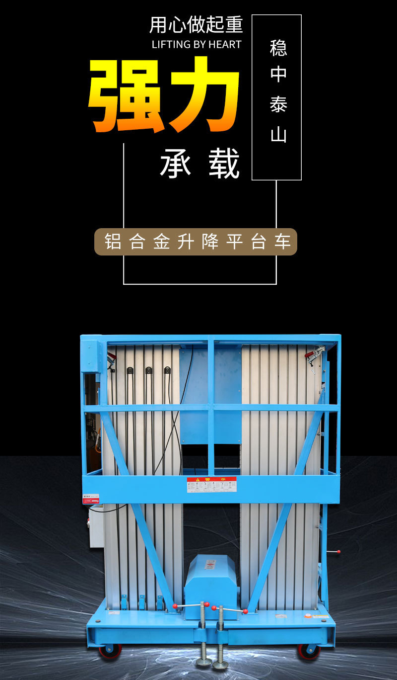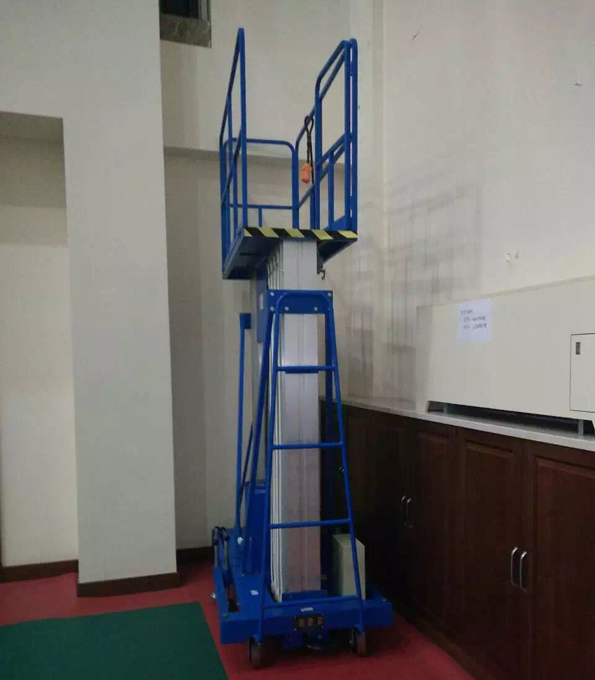 鋁(lǚ)合金升降(jiàng)機采用鋁合金材料,具有造型美觀、體積小、重量輕、運轉靈活,推行方便。升降平穩、安全可靠(kào)等優點。它輕盈的外觀,能在(zài)小的空間內發揮好的舉升能力(lì)。廣泛用於工廠、賓(bīn)館、餐廳、車站、影劇院、展覽館等場所,是保養(yǎng)機(jī)具、油漆裝修、調換燈具、電器、清潔保養等用(yòng)途的伴侶。